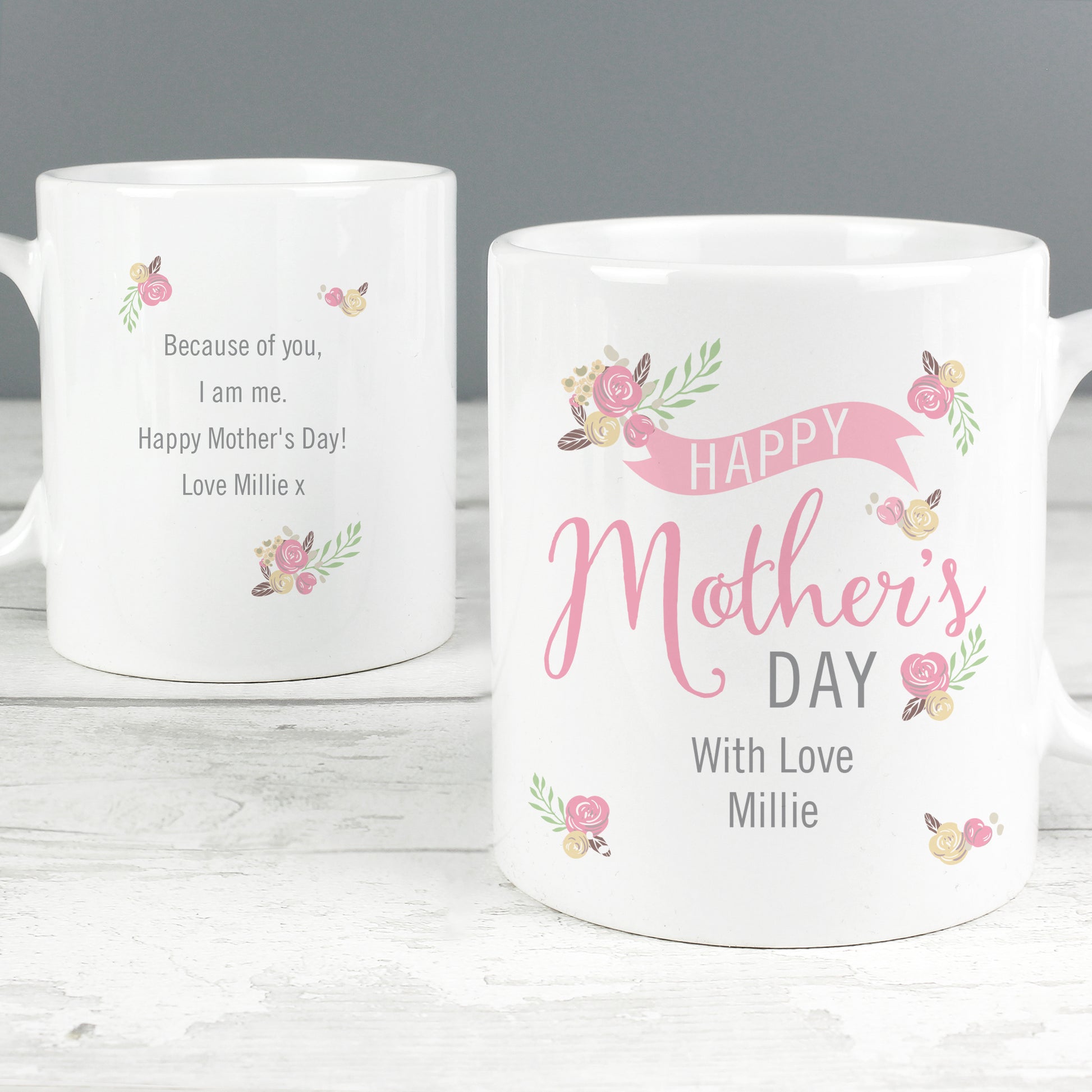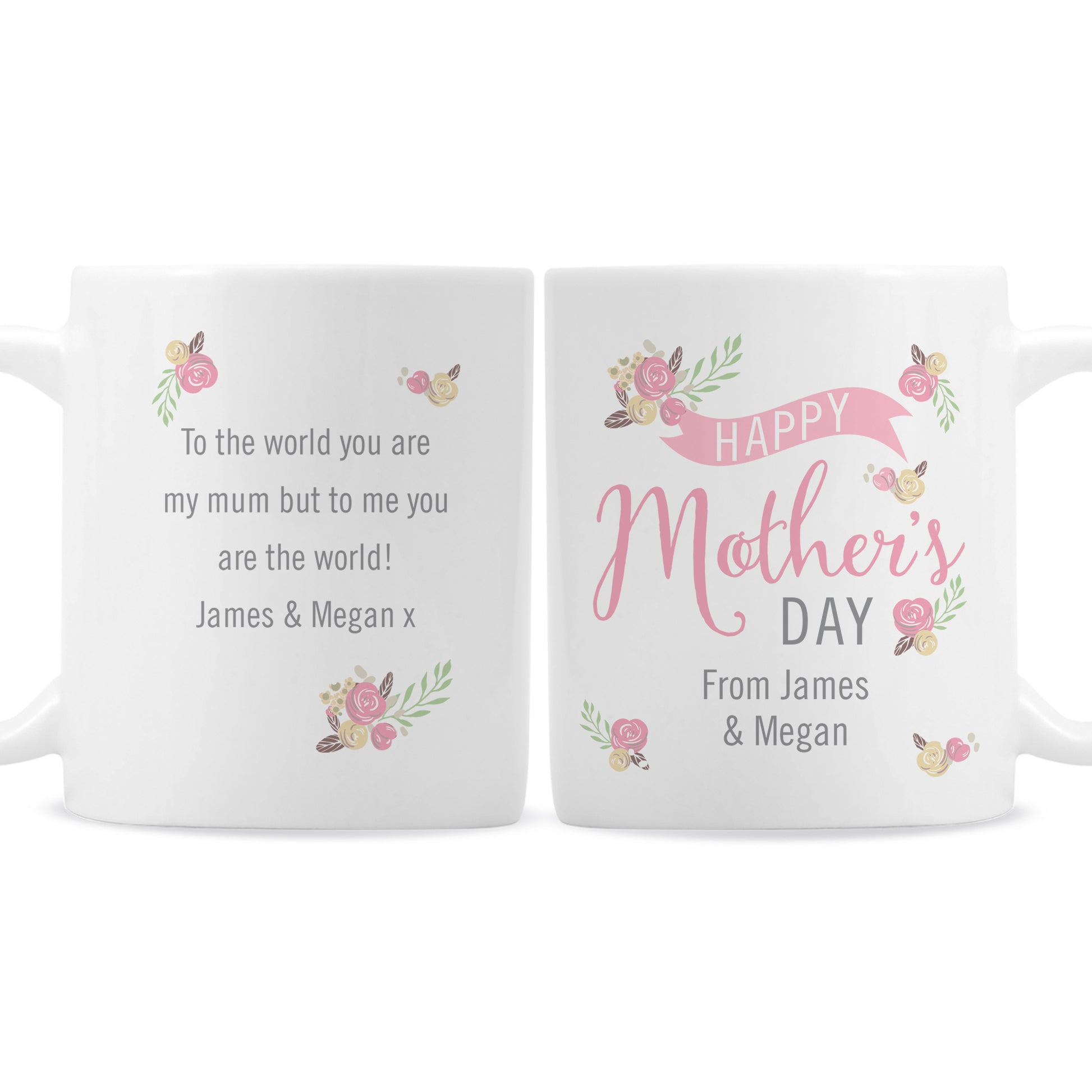 Celebrate Mum with a beautiful personalised mug designed especially for Mother’s Day. Featuring a soft floral bouquet design and elegant typography, this ceramic mug is a thoughtful keepsake she’ll enjoy every day.